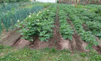 Şimdi “sonra daha iyi, ama daha kuru” ilkesine göre hareket ediyoruz: önce her burcun üzerine bir tel çerçeve yerleştiriyorum ve ancak o zaman donmuş zemine iki kat spunbond atarak yanlarda delikler bırakıyorum. Bu tasarım buzlu rüzgarlardan güvenilir bir şekilde korur ve yoğuşmanın geçmesine izin verir.